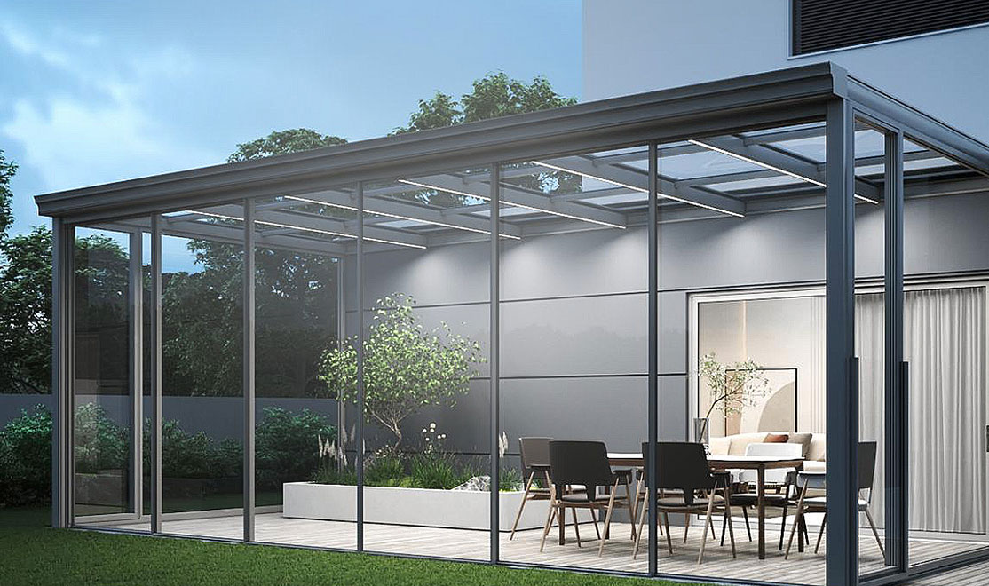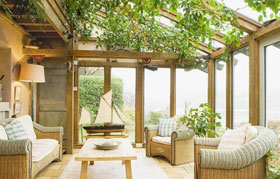 陽光房優缺點:鋼化玻璃頂:(優點)通透性.好的就是玻璃頂陽光房,(缺點)玻璃的通透性好勢必隔熱和保溫性就不太好。